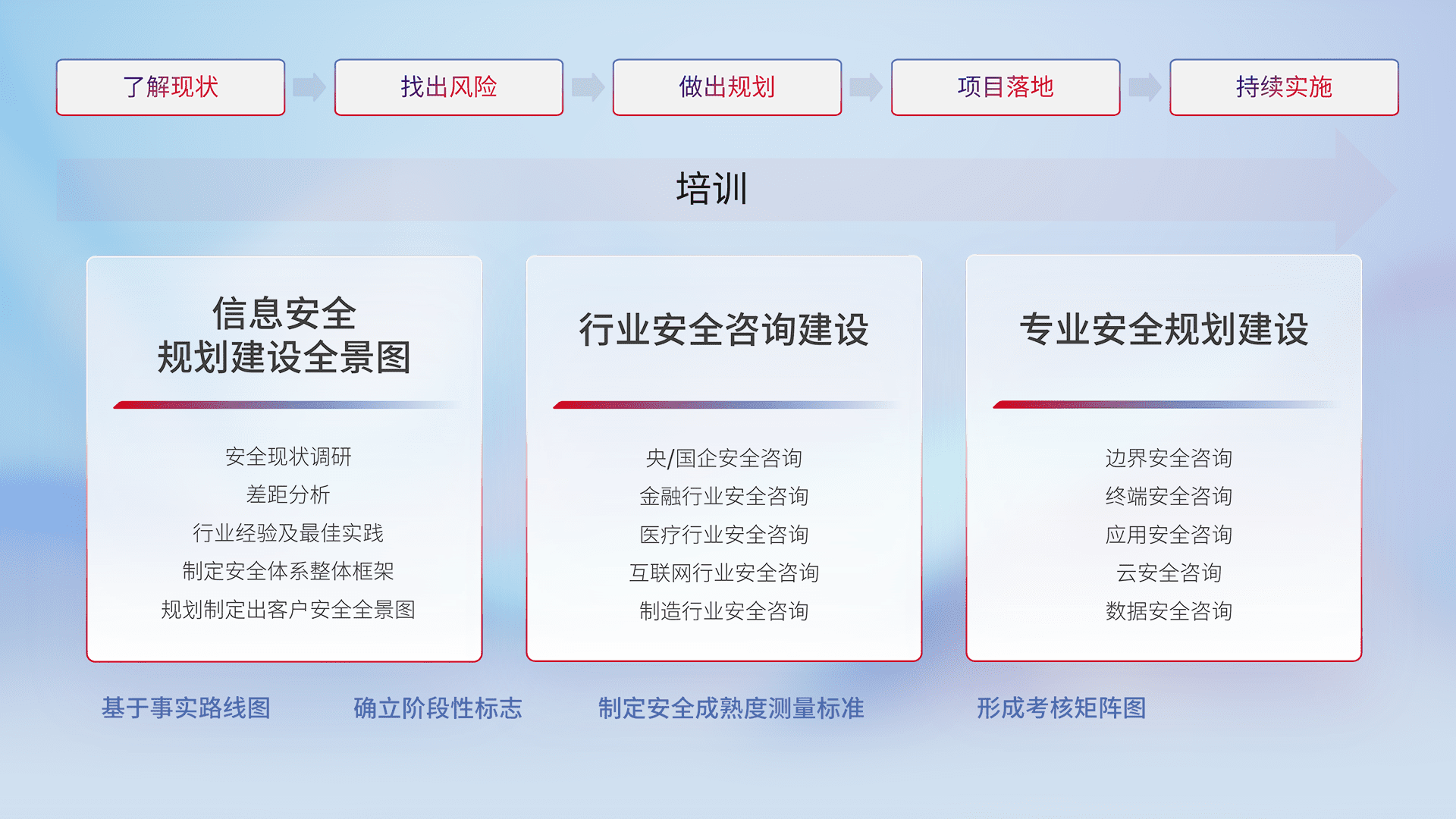 梳理客户信息安全现状调研、、差距分析结果,,,,结合行业先进经验及最佳实践,,,制订客户的信息安全管控体系总结架构,,最终形成一个完整的客户信息安全规划与建设的全景图。。