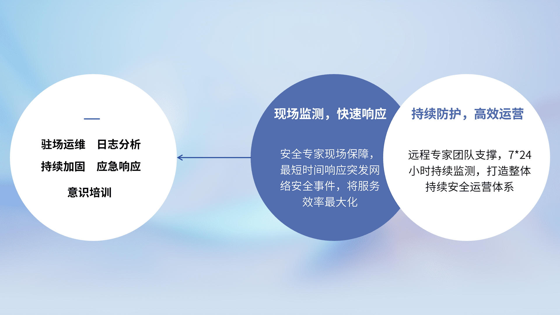 针对客户行业特性,,提供专属的一站式安全管理服务,,帮助客户全面感知网络空间威胁,,,通过安全专家的线上、、、、线下防护支持,,,实现风险闭环,,,,将安全保障常态化,,为客户打造常态化安全运维运营服务。。
